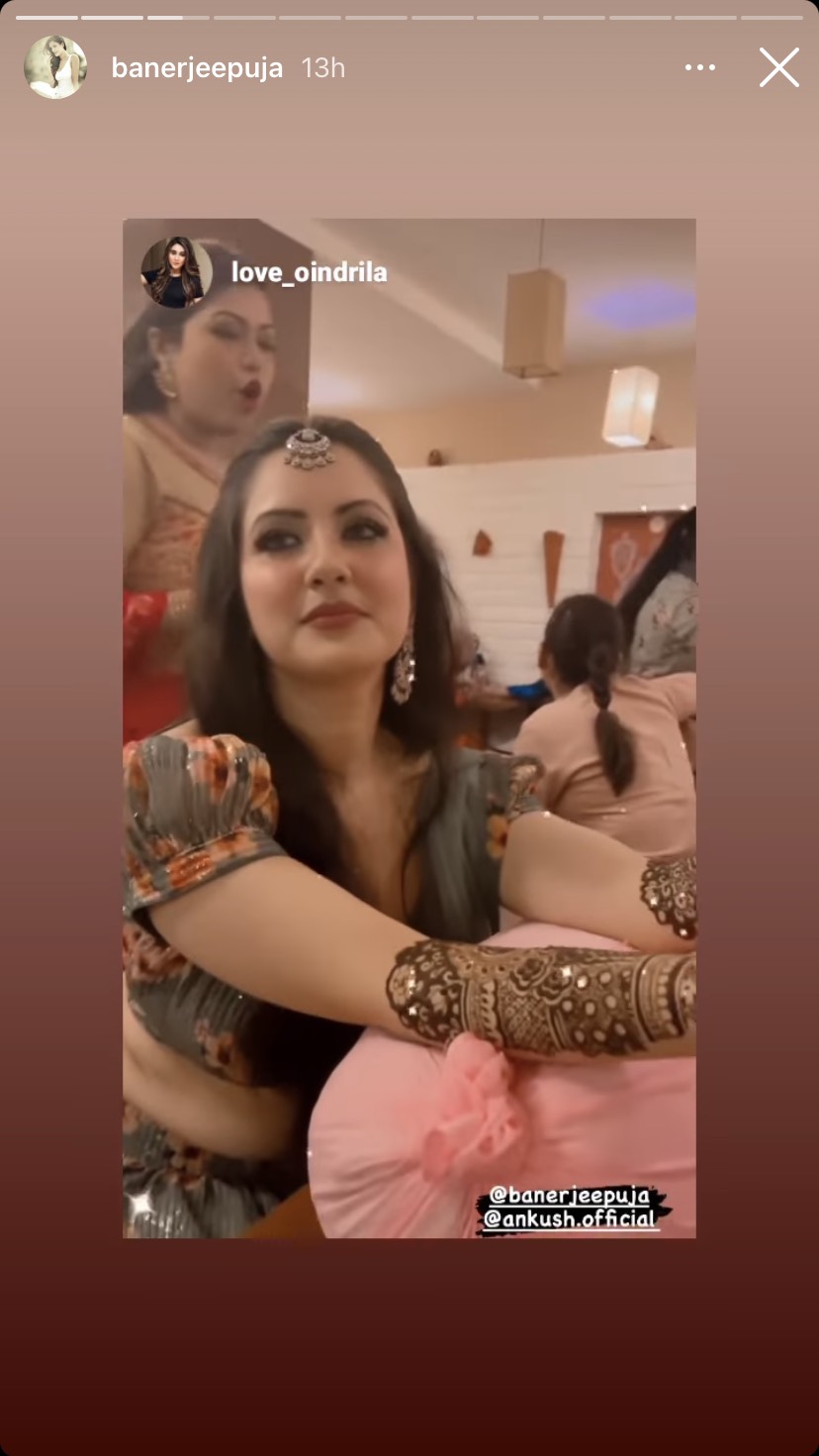 Puja Banerjee and Kunal Verma's friends, Monalisa and Aneek Dhar also shared a series of pictures on their respective IG handles. We caught glimpses of Puja and Kunal's son, Krishiv happily enjoying his parents' mehendi night. The baby boy looked dapper in a pink kurta with white pyjama and twinned with his mommy in a floral green Nehru jacket. Check out the pictures below: