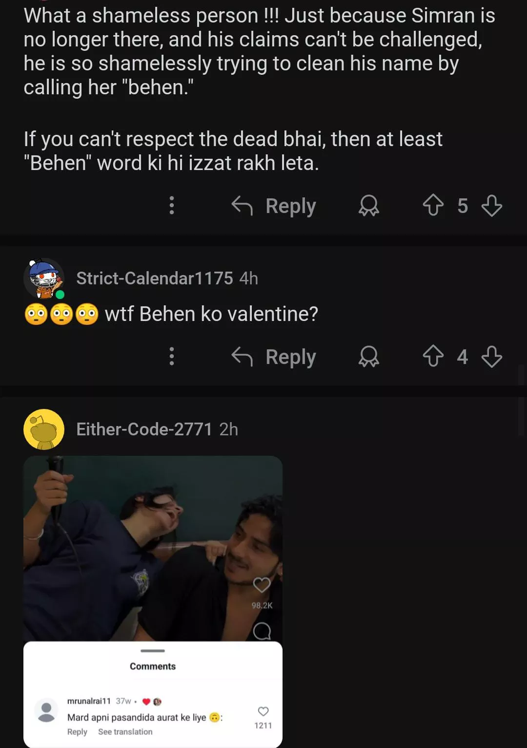 Reacting to the screenshot, one user penned, "After reading his post I thought it was damage control cause of the way he has used the particular word "behen" and the times he has used. I think there is something which he is clearly hiding." Another user commented, "What a shameless person !!! Just because Simran is no longer there, and his claims can't be challenged, he is so shamelessly trying to clean his name by calling her "behen." If you can't respect the dead bhai, then at least "Behen" word ki hi izzat rakh leta."