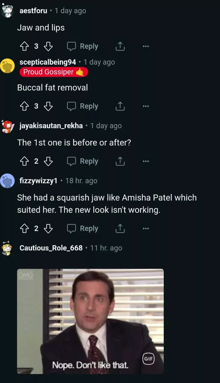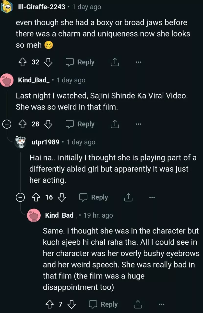 The Reddit user shared the photos with the caption, "How is this the same person? ft. Radhika Madan. Plastic Surgery - Doctor gives what God doesn't give you. I don’t understand why they do this to themselves! She was such a pretty face! What do you think she had done?" Soon, a section of netizens, who were completely shocked to see Radhika's huge transformation in her photos, posted mean comments on the same. While one user wrote, "Her jaw looks completely different", another user replied to it by saying, "Masseter Botox working it’s magic". One more comment read, "Another surgery gone wrong."