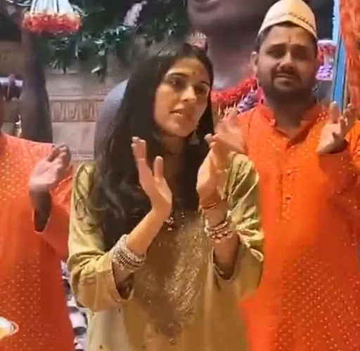 Kokila Ambani was also present at the puja. She performed the aarti and looked after the customs and rituals. For the day, she wore a pink saree paired with diamond and ruby jewellery.