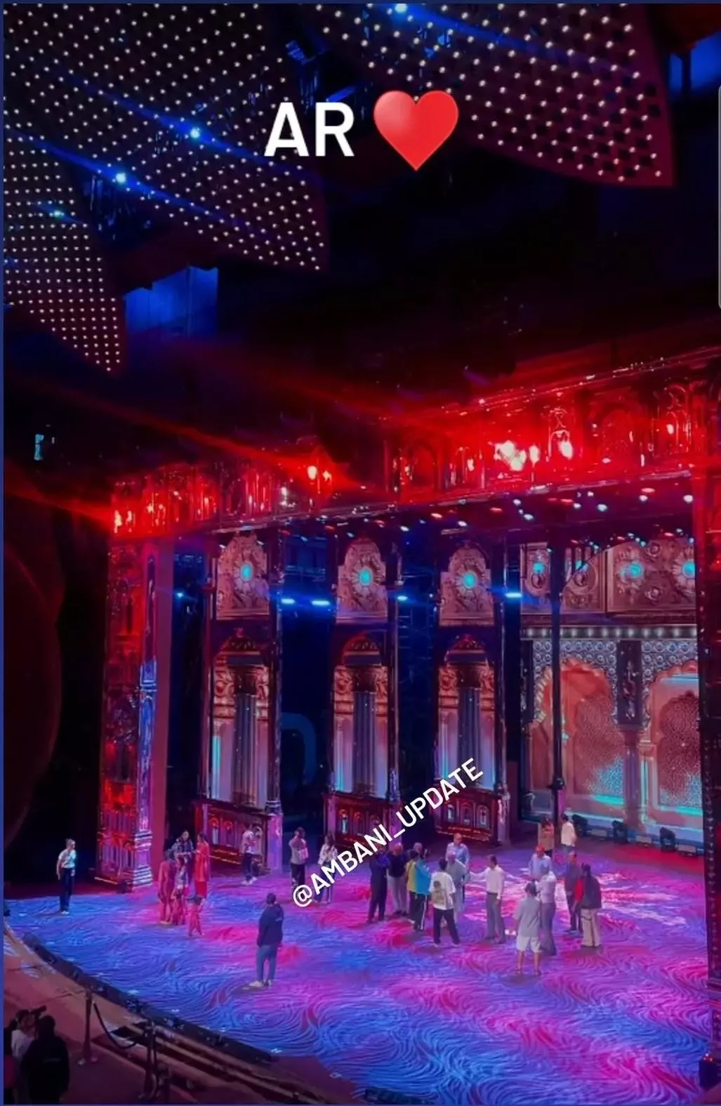 Earlier, an Ambani fan page gave a sneak peek into the stage especially prepared for celebrating Anant and Radhika's sangeet ceremony at the Grand Theatre hosted in the Nita Mukesh Ambani Cultural Centre. Moreover, it was the startling decoration with purple-hued starry lights, flowers, and more that caught our attention. In the same picture, we got to see that rehearsals were going on for the day, and a number of participants were seen conversing while standing on the stage.