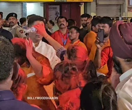 Amid all the videos of the Ambani family’s Ganpati visarjan, it is Anant and Radhika’s cute and playful moment that caught attention. While dancing her heart out, Radhika was seen playfully pouring water from a bottle over Anant. Smiling at his wife, Radhika’s cute antics, Anant hugged her and smeared gulal on her.