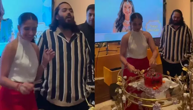 Radhika Merchant's birthday celebration was a showcase of elegance, starting with her choice of attire. She donned a backless, strappy white top that exuded sophistication, paired with a vibrant red skirt that added a pop of colour. Her look was accentuated with diamond earrings, a subtle makeup, and a sleek ponytail. Anant, her husband, complemented her style with a chic horizontal striped shirt.