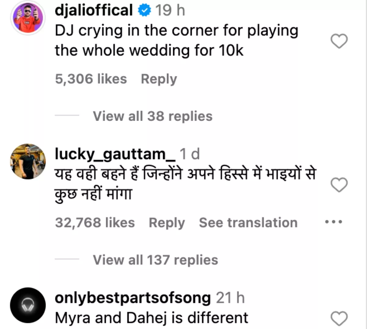 Someone pointed out how a man should not take these expensive gifts and wrote, "Chalo agar koi mama de bhi raha hai khule dil se to ladke mai to sharam honi chahiye ki vo bheekhmange ki tarah na le sabkuch." Another one wrote, "Baap re ...as a beti main khud saadi se mna kar deti..main kabhi apne mata pita ko itne paise ni dene deti."
