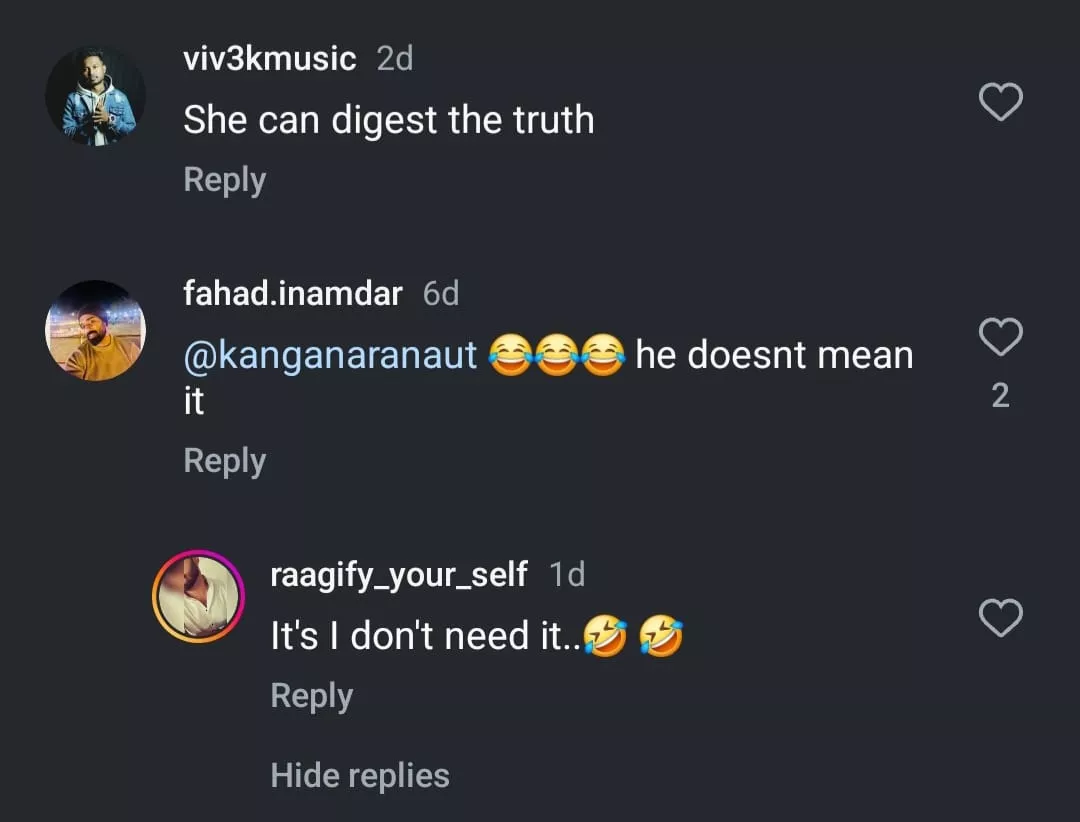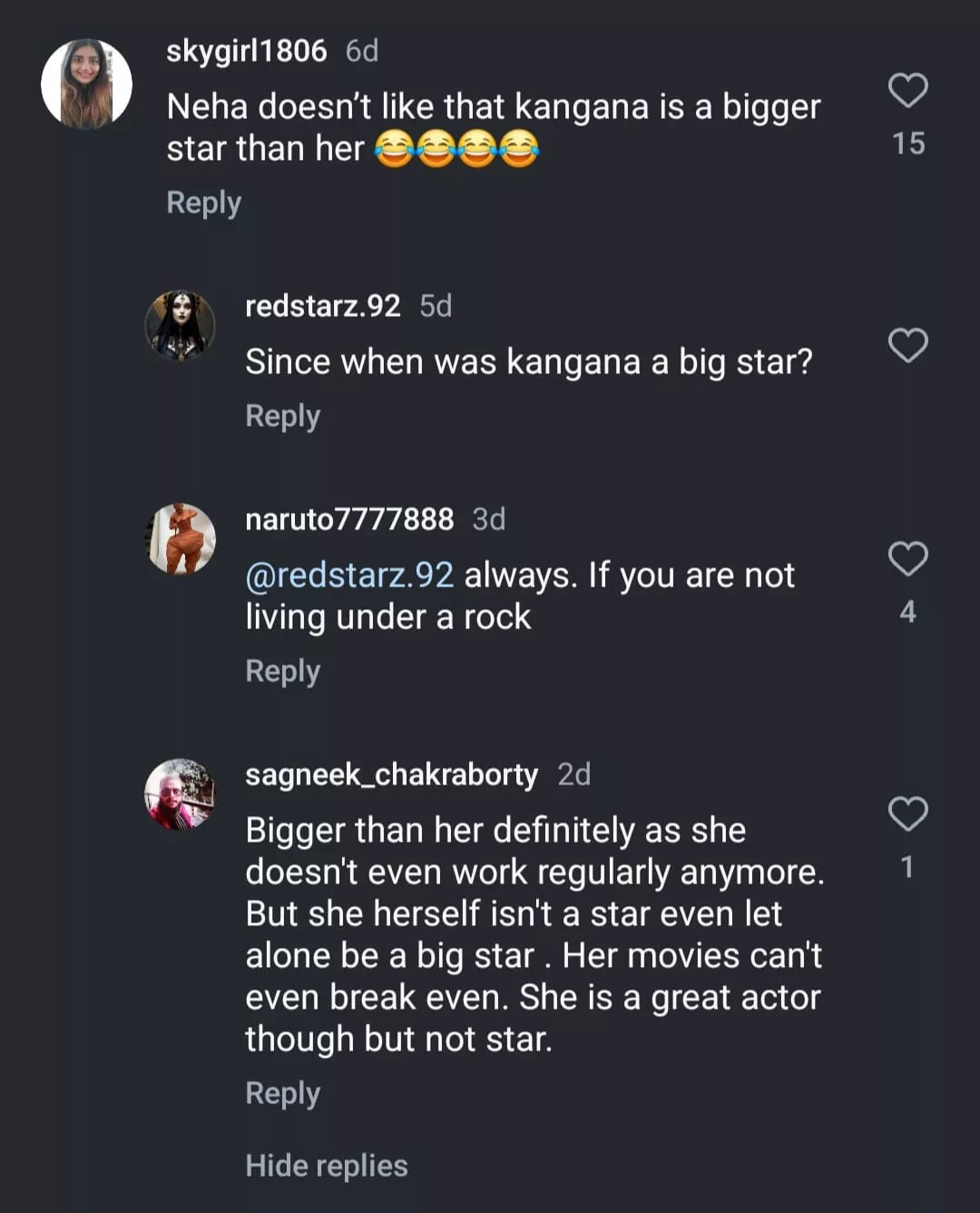 Netizens took to the comment section to share their opinions on the resurfaced clip, but their attention seemed to have been more on Neha Dhupia than on Rajkummar Rao. One user penned, "Neha doesn’t like that kangana is a bigger star than her." Another netizen tagged Kangana Ranaut and wrote, "@kanganaranaut he doesnt mean it."