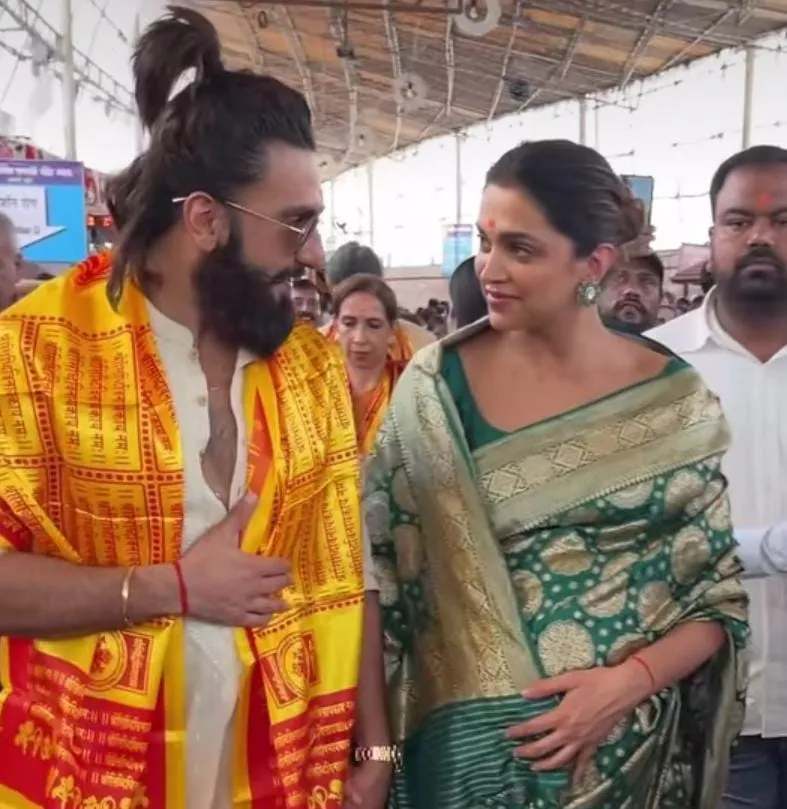 Recently, a video of Deepika Padukone and Ranveer Singh from their recent appearance made rounds on social media. The couple was out to seek blessings on the very first day of Ganesh puja. For the day, Deepika was seen clad in a green-toned Benarasi saree, which she teamed with a matching blouse.