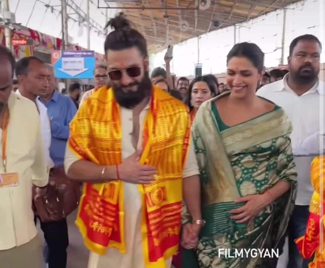 A soft touch of makeup and a tied-up hairdo added stars to her look. Ranveer looked handsome in a beige-toned kurta set. The couple visited Siddhivinayak temple barefoot, and Ranveer could be seen asking Deepika, 'Are you okay'? The mum-to-be, Deepika, who was struggling to walk with her full-grown baby bump, could be seen flaunting her cutesy smile and replying, 'Yeah'.