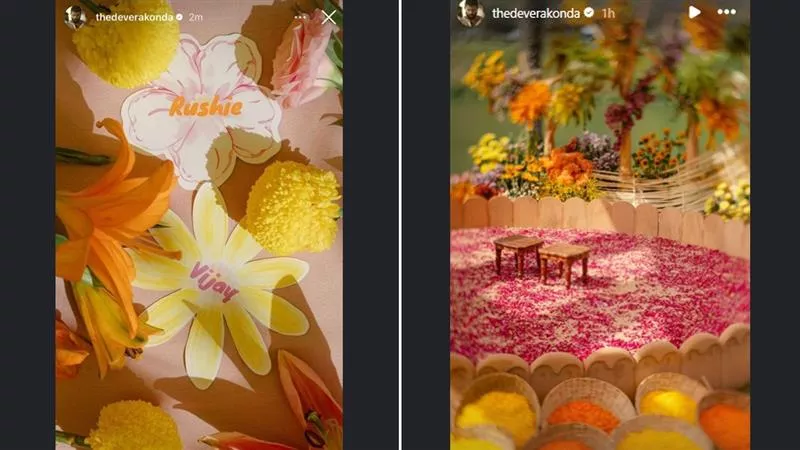 On February 25, 2026, Rashmika's haldi ceremony was performed. It seems like it is going to be a gala event as Vijay and Rashmika have taken to their Instagram handle and posted glimpses from the same. Vijay shared a cute glimpse of the decor, which was handmade flowers, and one of them revealed Rashmika's nickname, 'Rushie', and another one had Vijay's name on it.