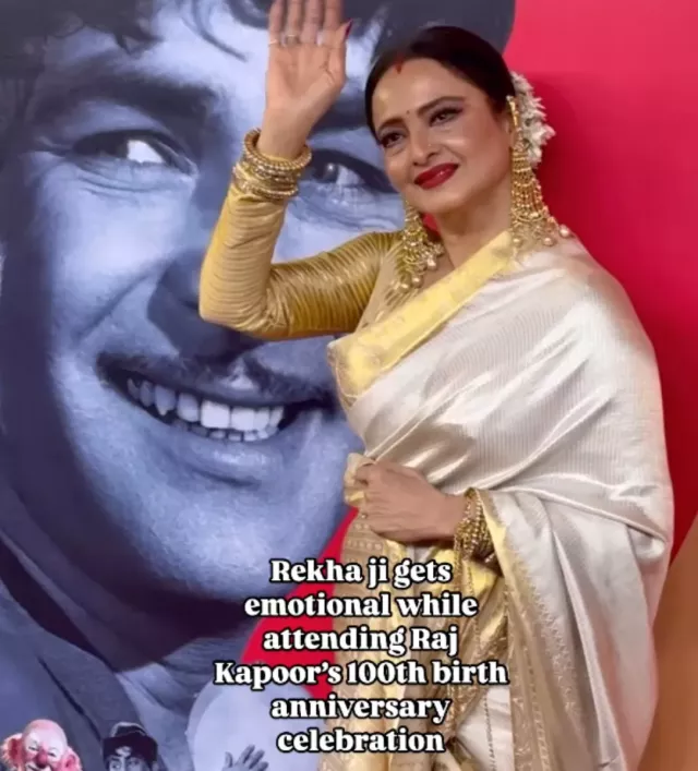 Rekha also bowed her head in reference to the Bollywood legend, paying a powerful homage to Raj Kapoor's legacy without saying a single word. Following a moment of silence out of respect, Rekha posed for the paparazzi, radiating her signature grace and elegance.