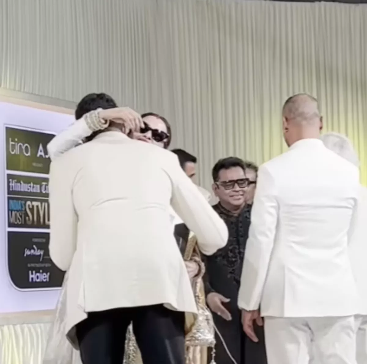 Further, we spotted Abhishek Bachchan running up to the stage to greet Rekha. She gave him a warm hug and the two indulged in a quick chat. It was a heart-melting moment to see Rekha shower love on Abhishek.