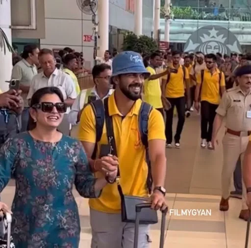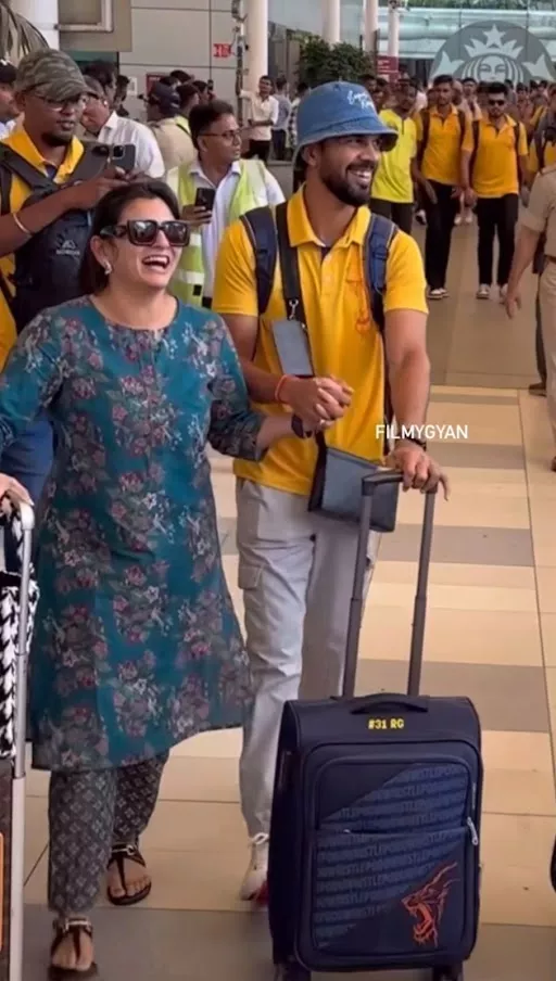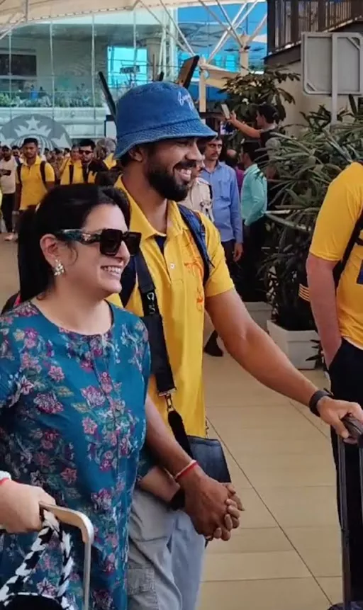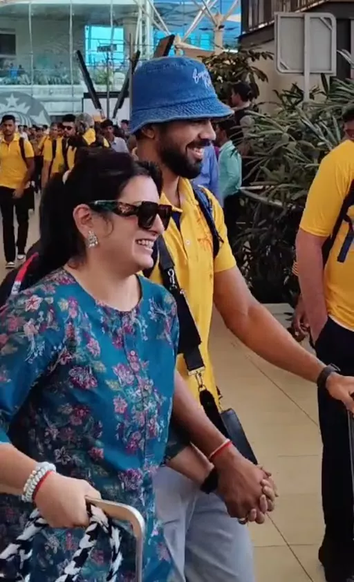 On April 8, 2024, CSK won a match against KKR and is now gearing up for their next match with Mumbai Indians. Scheduled for April 14, the CSK vs. MI match is one of the most anticipated contests among the legendary rivals. The CSK team was recently spotted at the airport as they landed in Mumbai, where they are scheduled to face MI in Wankhede stadium. While exiting the airport, Rituraj and his wife, Utkarsha Pawar, stole the limelight with their sweet romance.