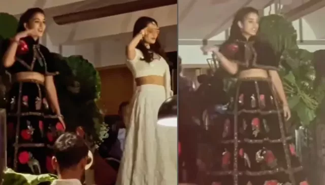Fashionista, Radhika Merchant was captured celebrating her friend's wedding to the fullest in the stunning showstopper lehenga from Rohit Bal’s last collection. In a clip from the wedding, the Ambani bride was seen performing with two other friends on the song Sajna Ve Sajna. Her proud in-laws, Mukesh and Nita Ambani, were also spotted in the crowd recording their daughter-in-law’s dance. Radhika donned Ananya Panday's showstopper outfit for the wedding festivities.