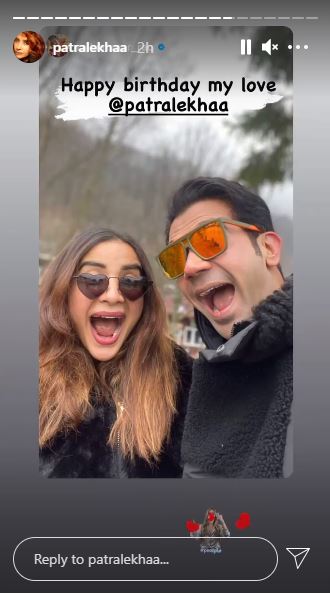 After some minutes, Raj Kummar Rao took to his IG stories and shared a crazy selfie with his ladylove, Patralekhaa, from one of their vacations. In the cutesy selfie, the couple posed for the camera with some hilarious expressions, and it's impossible not to fall in love with this madly-in-love couple. The doting boyfriend wrote, "Happy Birthday My Love @Patralekhaa" atop it. Soon, Patralekhaa reshared it on her IG stories and put flying kisses GIF atop it in response to his boyfriend's sweet birthday wish for her. (Don't Miss: Mira Kapoor Wore A Rs 35,000 Chiffon Saree For BFF's Wedding, Looked Like A YRF Actress Flaunting It)