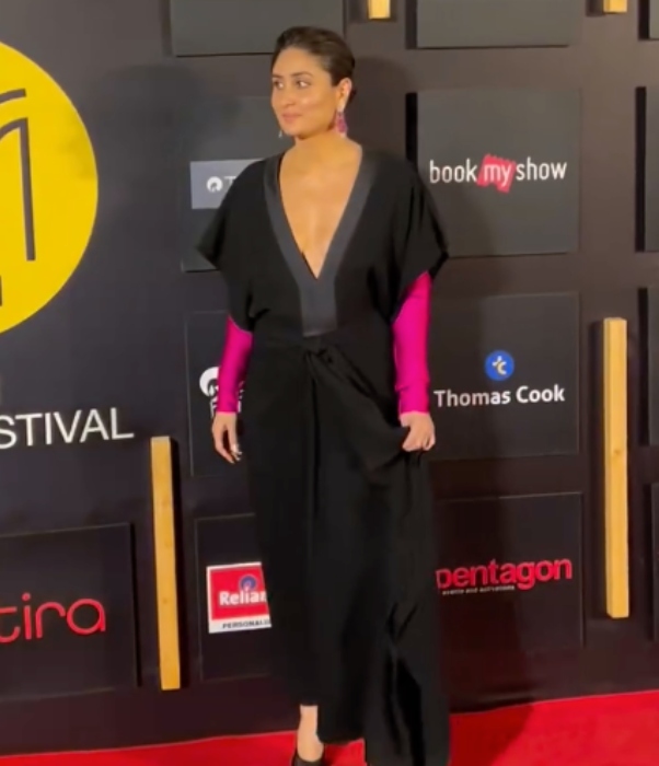 While Saif And Karisma twinned in a matching ensemble. Kareena was seen donning an unusual black dress with wide neck and rani pink-toned sleeves. However, it didn't looked like Bebo's signature style.