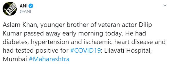Saira Banu’s message on Saab’s health. pic.twitter.com/BIb3vyuZVe — Dilip Kumar (@TheDilipKumar) March 13, 2020