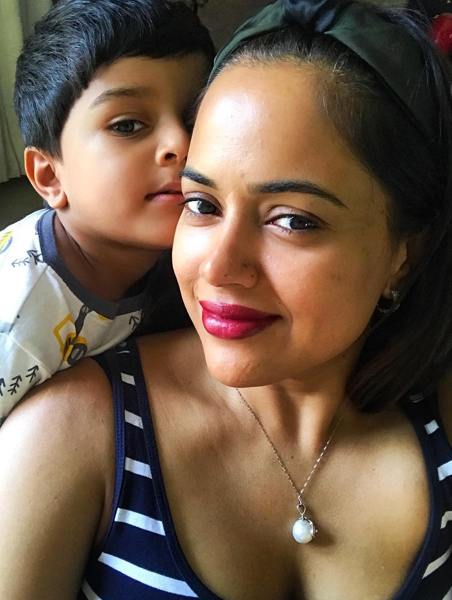 Sameera Reddy had announced Hans Varde's 4th birthday on May 21, 2019, by sharing the following photo giving a peck on his cheeks. She had captioned it as, "My monkey is going to turn 4 yrs old this Friday how quickly time flies!. #birthdayweek #hansvarde #myson #throwback #motherandson."