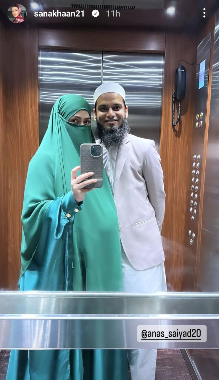 Sana also shared a mirror selfie with her hubby, Anas ahead of attending the event. She was seen flaunting her baby bump in a green abaya. Further, in the same conversation, Sana was asked what names she has decided for her to-be-born child. To this, the doting mom-to-be gave a bright smile and revealed that even though she has thought of certain names- both for boy and girl, she won't reveal them now. The former actress mentioned, only after her delivery would she announce the names to the world. In Sana's words: