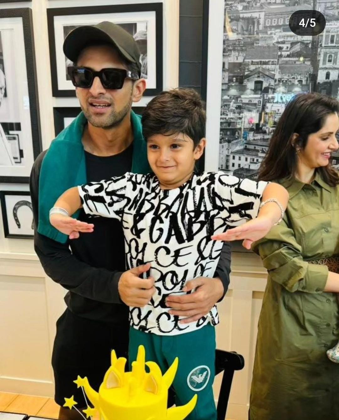 Taking to the IG handle, Shoaib Malik shared a couple of pictures from his and Sania Mirza's son, Izhaan's fifth birthday. In the pictures, the father-son duo was seen posing for the lens while standing in front of a scrumptious cake. While the little boy wore a printed t-shirt paired with green pants, his daddy looked handsome in an all-black outfit paired with matching sunnies and a cap. In the pictures, we can also spot Sania in the background while the photos were clicked. Sharing the pictures, the doting daddy wrote: