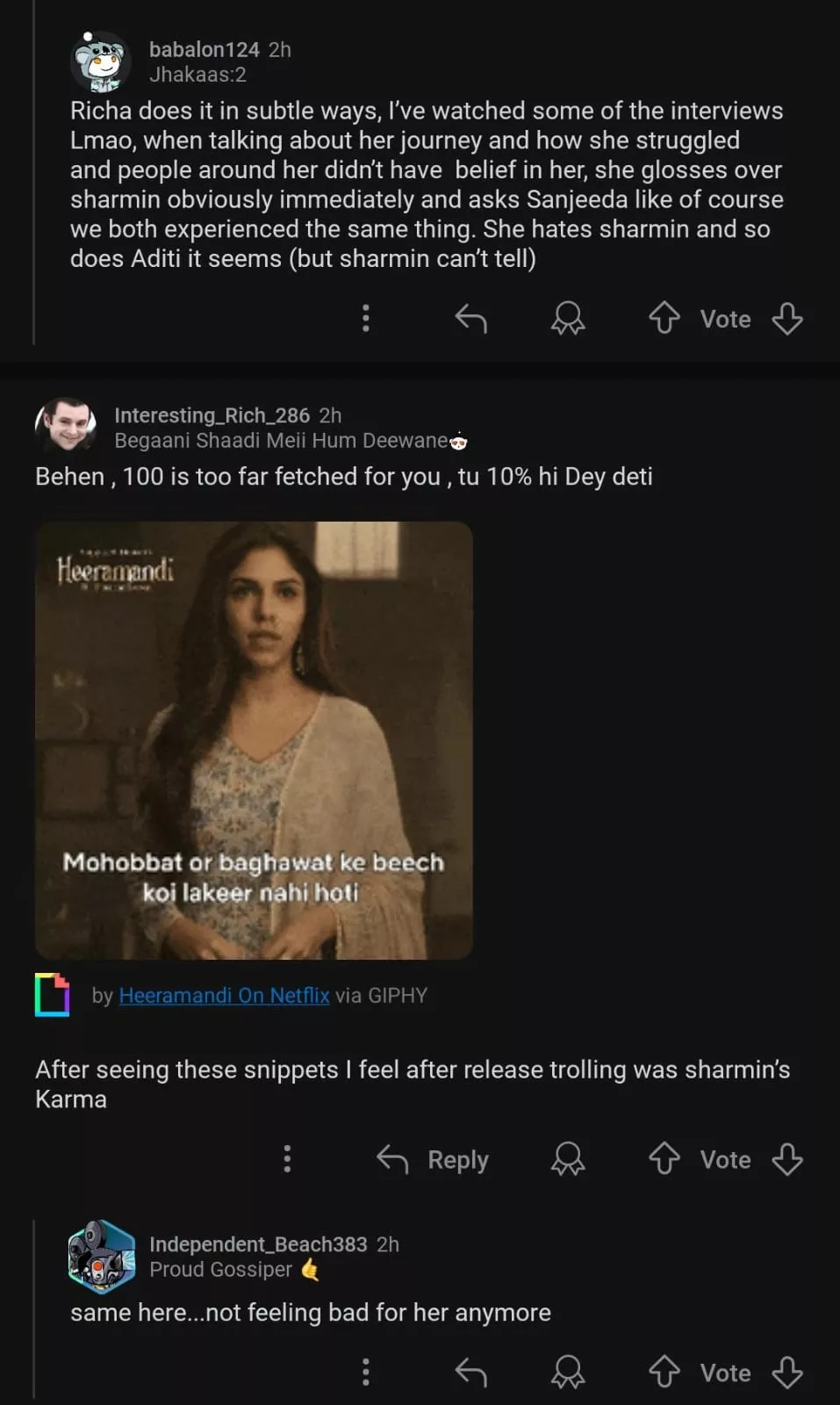 The same excerpt from the whole interview was shared on the discussion platform, Reddit. The netizens soon started penning down their thoughts, pointing out Sharmin’s disrespect towards her colleague, Sanjeeda. One user said, “Again that stupid smile for no reason at all! And the audacity to say "perfectionist is something that an outsider would say.'” Another one wrote, “Still he was not able to make you act.” Meanwhile, a third netizen penned, “What a rude person she is??!! Only an outsider would use the word perfectionist to describe SLB??...how entitled is she??? jeeezzzz...She should have been called out then and there...”