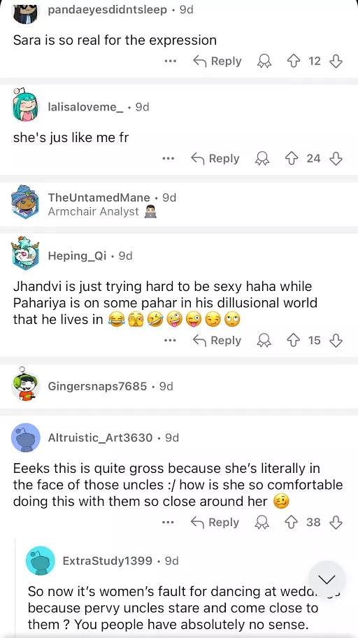Now, the video is widely being circulated on the internet, and netizens have been reacting to it. They pointed out Sara Ali Khan's funny expressions in the video and found them relatable. Meanwhile, some also bashed Janvi Kapoor for her vulgar dance moves in front of elderly people in Anant Ambani's baraat. A user penned, "Sara's face comes with subtitles. Jahnvi isn't a good dancer because she makes everything sultry."