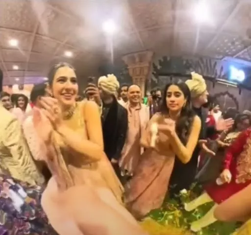 As the camera panned in the other direction, we could see Sara Ali Khan cheering for the baraatis. However, she was seemingly stunned to see Janhvi's sexy dance moves to the old song. Her expressions spoke volumes about how she was finding it hard to believe that Janhvi could dance like that to such a song. As soon as she noticed the camera, Sara immediately started smiling, and her expression changed.