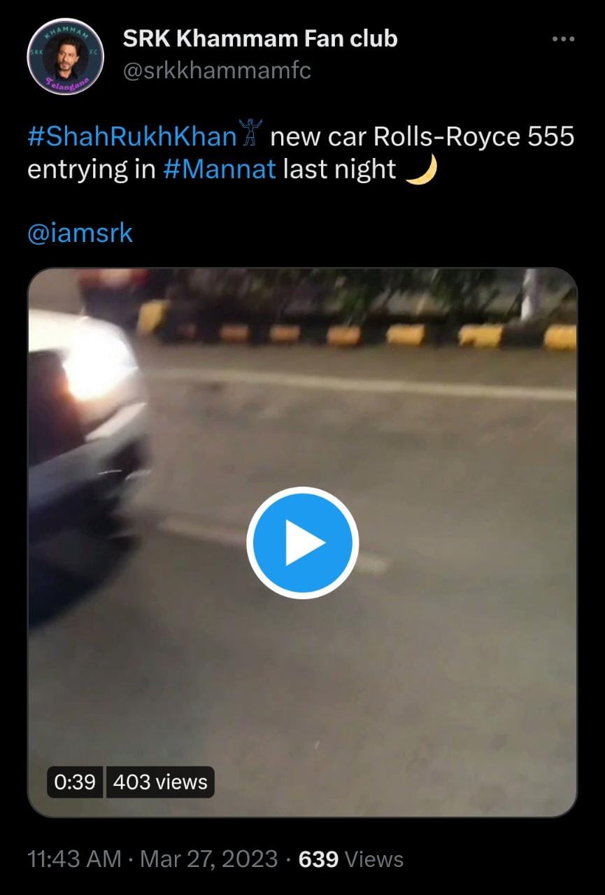 On March 27, 2023, the entire social media is filled with glimpses of Shah Rukh Khan's latest purchase, a swanky Rolls Royce Cullinan Black Badge. Taking to their respective twitter handles, Shah Rukh Khan's fans were seen sharing glimpses of the car spotted at various parts of the city. Not only that, the car with the nameplate of '555' was seen entering SRK and his wife, Gauri Khan's home, Mannat. Undoubtedly, the latest addition to SRK's luxurious car collection is indeed loved by their fans and they are seen reacting to it.