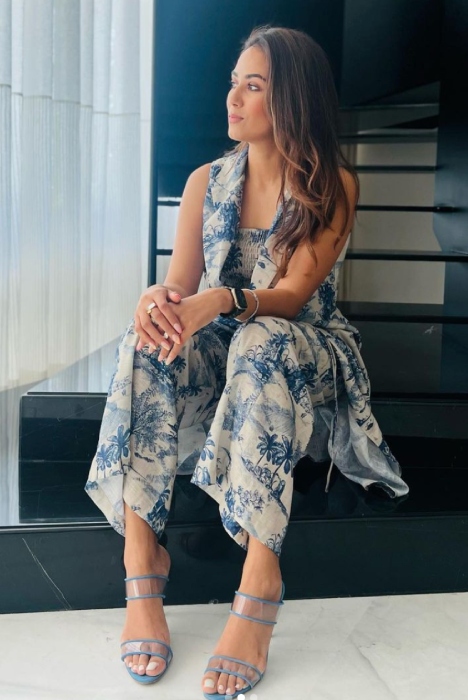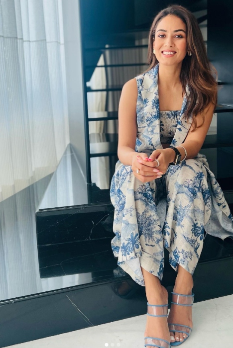 Recently, Mira took to her Instagram handle and posted a couple of pictures. In the photos, Mira looked summery fresh in a floral co-ord set. Her outfit featured a notch collar sleeveless jacket, which she paired with a tube-smoked crop top and matching pants. She kept her look subtle with her Apple watch and matching heels.