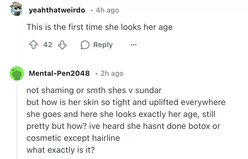 As soon as the photo was uploaded to the internet, netizens flooded the comments. One user wrote, "She looks so human without that hair updo she always has on." Another one commented, "This is the first time she looks her age." A third user penned, "She definitely looks her age here, so clearly on the show, the makeup / lighting and filters showed her to be more youthful."