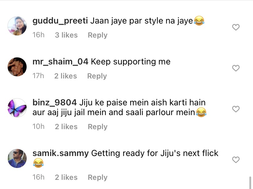 While some users talked about how she is still concerned about her looks and commented, “Kuch v ho jaye but style me rahne ka,” “They can't miss saloon”, some commented on Raj Kundra’s alleged case, and wrote, “Tere jiju se kaam mangleee woo mst company chalaraaaaaa”, and “Porneshwar jeeju.” One user even ended up calling Shamita and her family besharam as he wrote, “Besharam logh.”