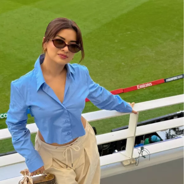 Avneet looked stunning in a crisp blue crop top and beige-hued jeans. She completed her look with a small classy bag, hair tied in a messy bun and black shades. She posed from the front row of the Dubai International Stadium and looked stunning in every frame.