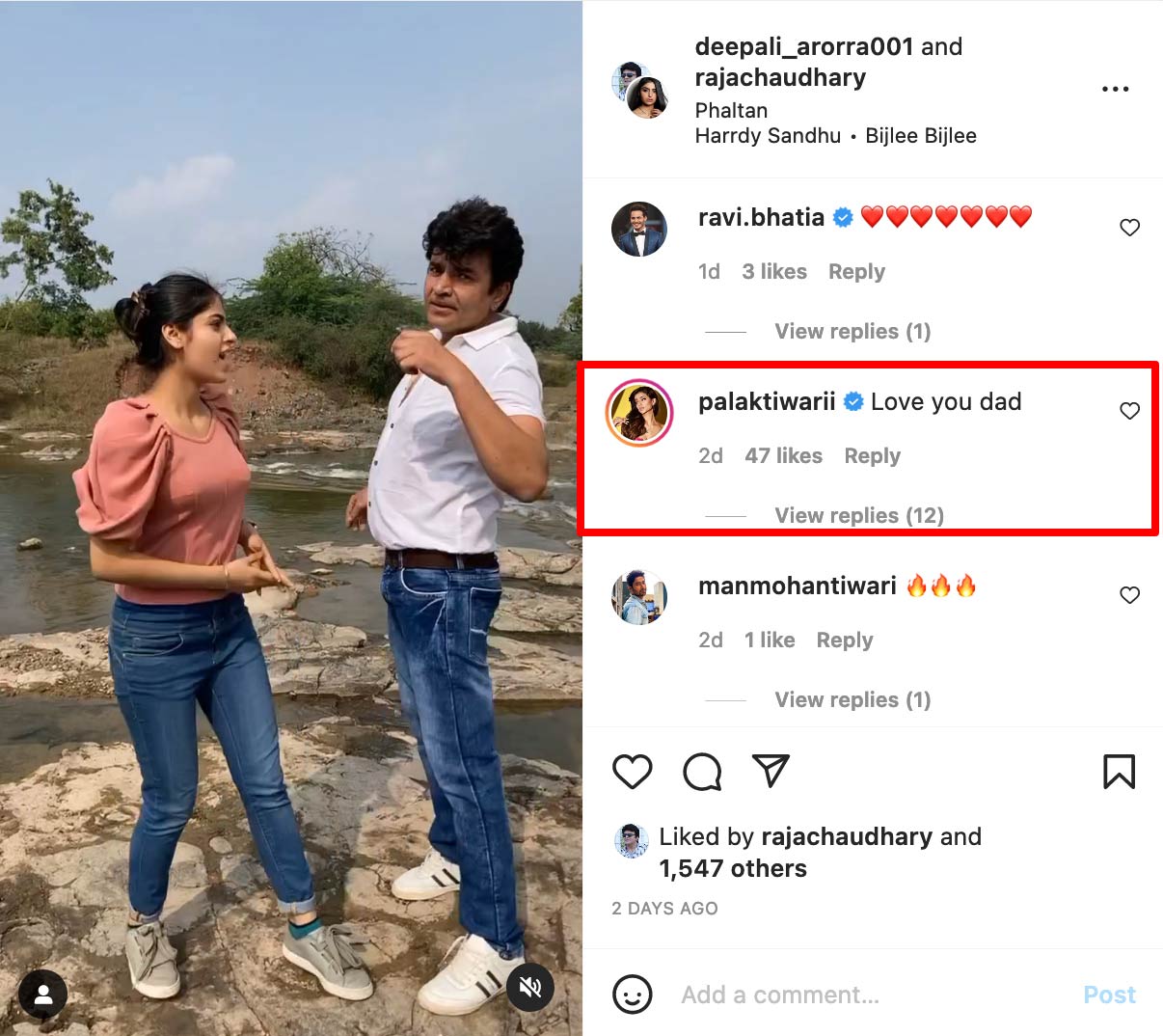 From doing the hook-step of the song to his cute expressions at the end of the video clip, Raja gives pure father goals with his dance video to everyone. Soon his actress-daughter, Palak wrote, "Love you dad" in the comment section.