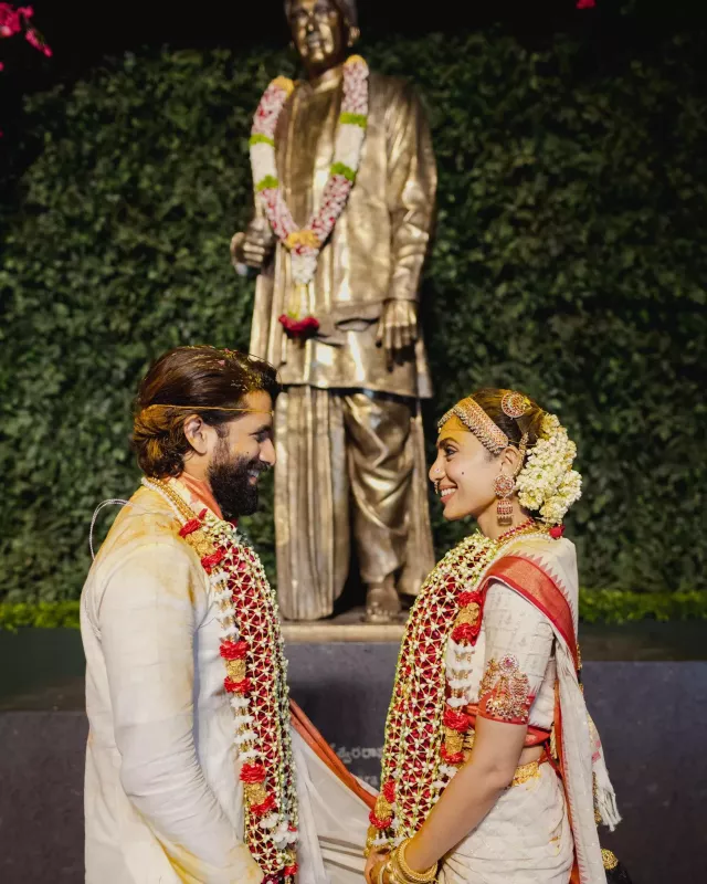Naga Chaitanya and Sobhita Dhulipala's long-awaited union was celebrated in a wedding that was both intimate and grand, held at the prestigious Annapurna Studios in Hyderabad. The event was a lavish affair, a testament to their love and commitment, and a grand display of honouring their elders and seeking blessings from the divine. The eight-hour-long Tamil-Brahmin wedding rituals added a touch of grandeur to the celebration, making it a truly memorable event. Sobhita, for her special day, was clad in gold jewellery from head to toe.