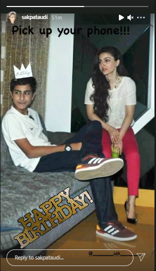 Well, the birthday boy, Ibrahim was busy the entire day with the celebrations and seems like he could not make time to pick up his bua, Soha Ali Khan’s phone. Taking to her IG stories, a few hours back, Soha shared a picture with Ibrahim, where he looked unrecognisable. The picture looked like from his teenage days as the bua-bhanja looked indulged in a conversation with someone. While Ibrahim can be seen in a white t-shirt and black jeans, Soha can be seen in a white top and reddish-pink pant. Sharing the picture, Soha added a ‘Happy Birthday’ and ‘Birthday boy crown’ GIF atop it. She also wrote, “Pick up your phone!!!” atop the picture. Take a look: