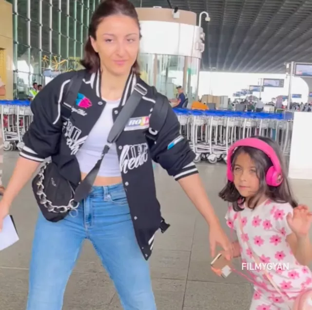 On August 22, 2024, Soha and Inaaya were spotted at the airport. Soha was dressed in a chic white crop top, which she paired with a stylish jacket and blue jeans. Her look was completed with a trendy side sling bag and white kicks. Inaaya, on the other hand, was a fashionista in the making, wearing a co-ord set with pink flower prints on it. She added a fun touch to her look with pink headphones and a cute side sling bag.