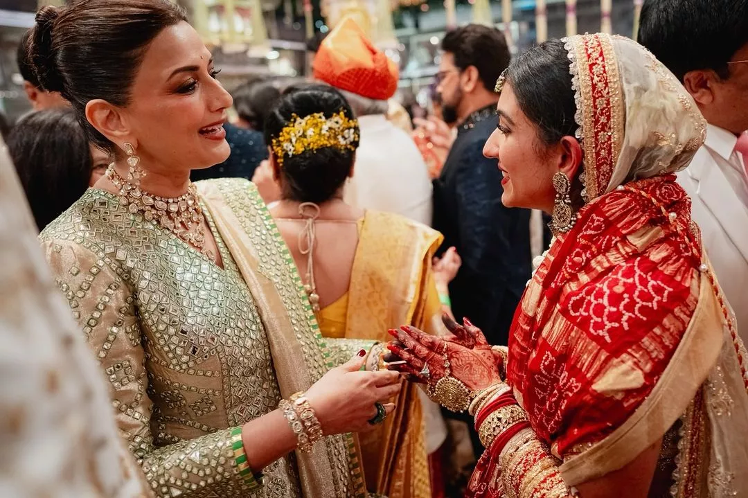 Recently, popular Bollywood actress, Sonali Bendre, who attended the wedding ceremony of Anant and Radhika, along with her husband, Goldie Behl and son, Ranveer Behl, took to her Instagram account to pen a sweet note for the newlywed couple. She shared some unseen pictures of the bride, who was seen happily meeting with Sonali and her son.