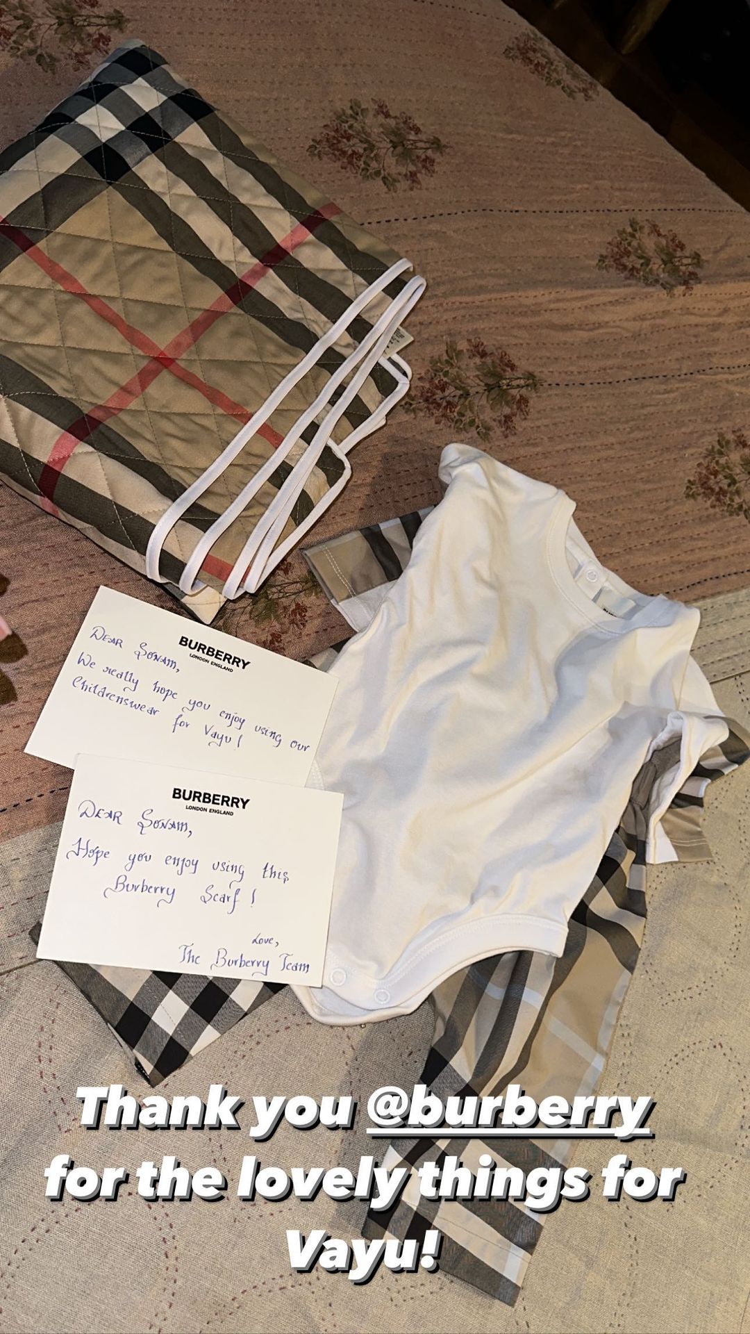 "Thank you @burberry for the lovely things for Vayu."