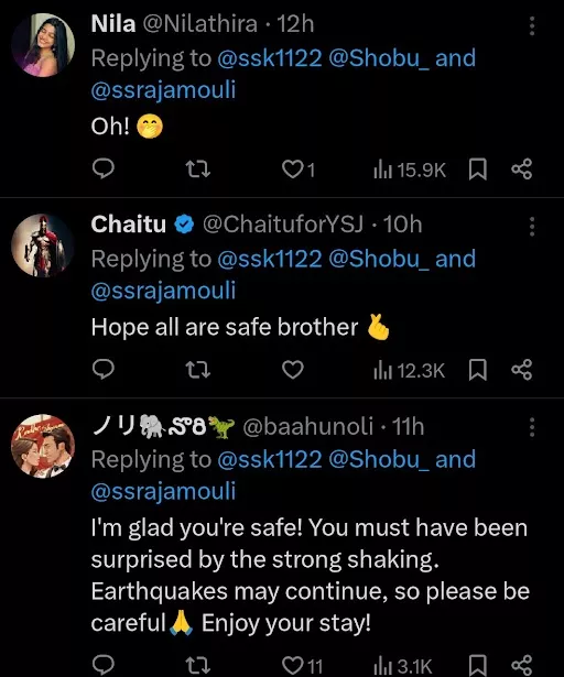 As soon as the earthquake news came to the forefront, the Indian masses were concerned about SS Rajamouli and his crew's safety. But with SS Karthikeya's post, they became sanguine that the crew is safe, but another section was not impressed with the youngster for referring the natural disaster as a bucket list activity and poking fun at it. While some understood his humour and laughed, others called his post insensitive and slammed Karthikeya.