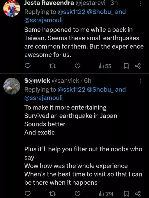 Let us know your views on SS Karthikeya's funny take on Japan's recent earthquake.