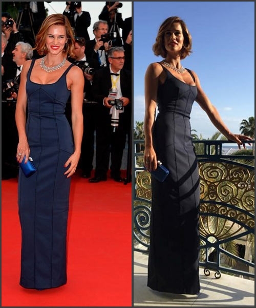 Want to look sleek, stylish and sexy? Well, this dress by Prada, worn by famous Claudia Vieira, will totally do justice. This is a straight-cut sexy gown, which is just perfect for a classy cocktail party. Trying matching metallic statement jewellery with this stunning outfit as the fabric is already accentuating your look for the cocktail night.