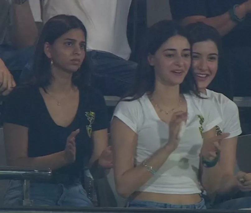 In the other picture, the three best friends were seen cheering for KKR from the stands in the final match of IPL 2024. Ananya and Shanaya opted for white crop tops with KKR’s logo paired with denim and were seen in a jolly mood. Meanwhile, Suhana Khan, on the other hand, wore a black KKR jersey paired with jeans and looked pretty tensed in the picture. The post was captioned as: