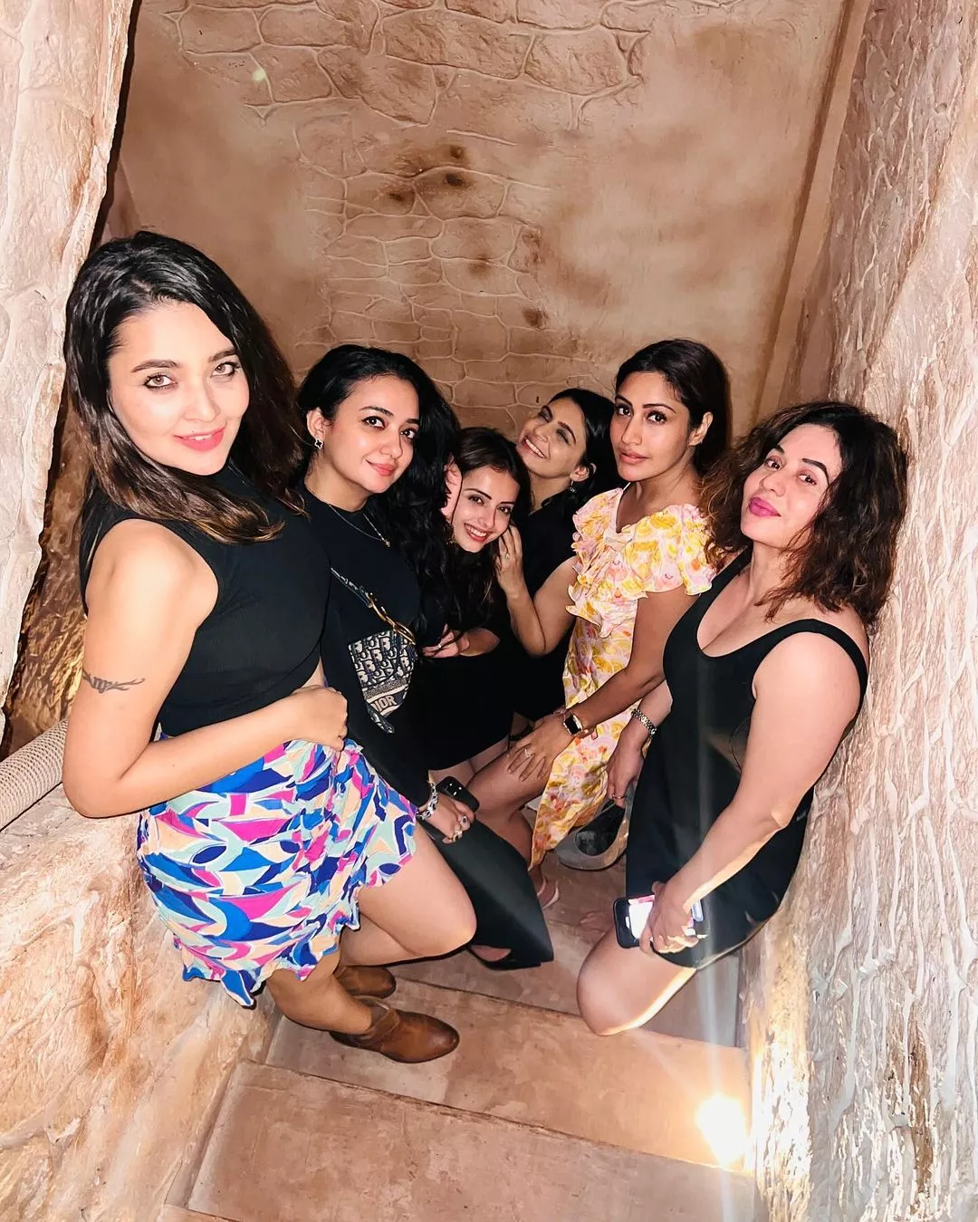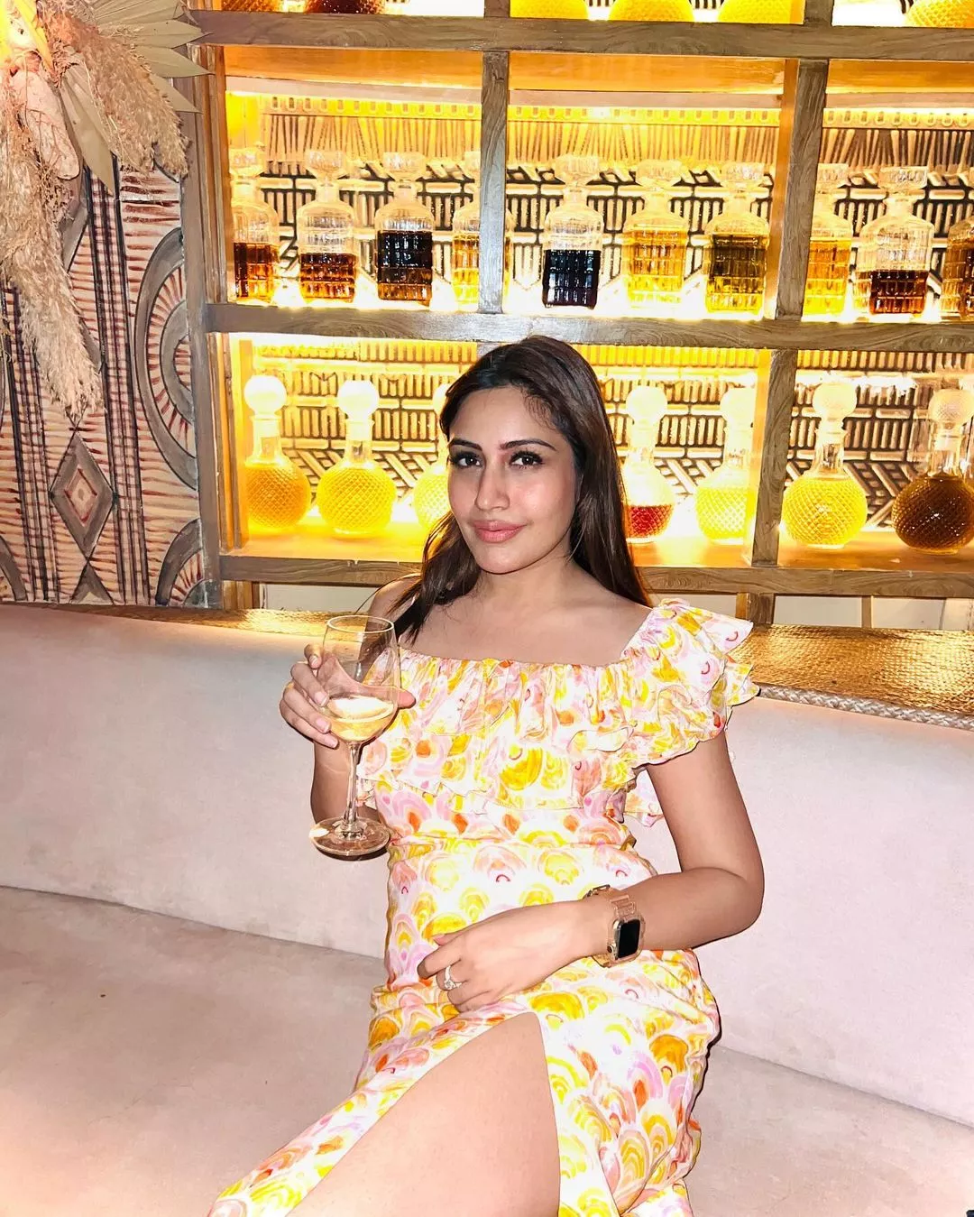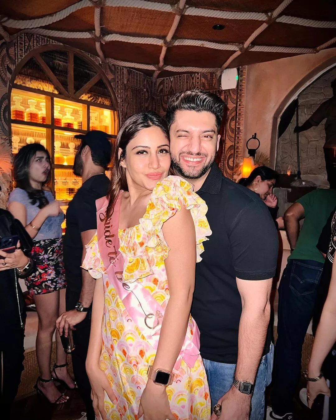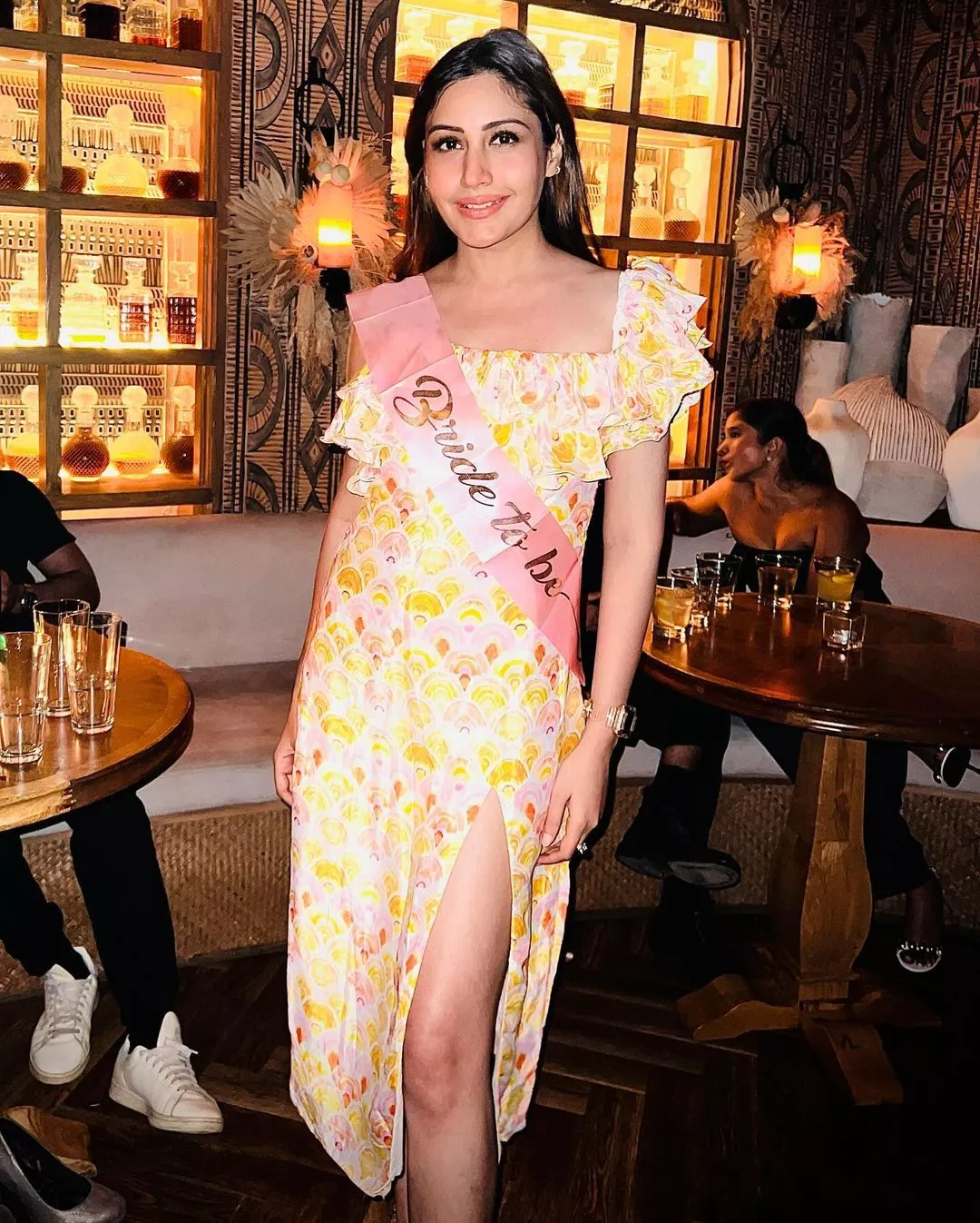 Taking to her IG handle on February 29, 2024, Surbhi Chandna dropped a bunch of pictures from her gala bachelorette bash, arranged by her best friends. In the pictures we can spot the soon-to-be bride enjoying special moments with her BFF's, including Mansi Srivastava, Shrenu Parikh, Mreenal Deshraj, Kunal Jaisingh and his wifey, Bharti, among others. In the first few snapshots, Surbhi gave a glimpse of her OOTN, and she looked sexy in a floral-printed dress featuring a thigh-high slit. She kept her tresses open, opted for subtle makeup and wore a bride-to-be sash.