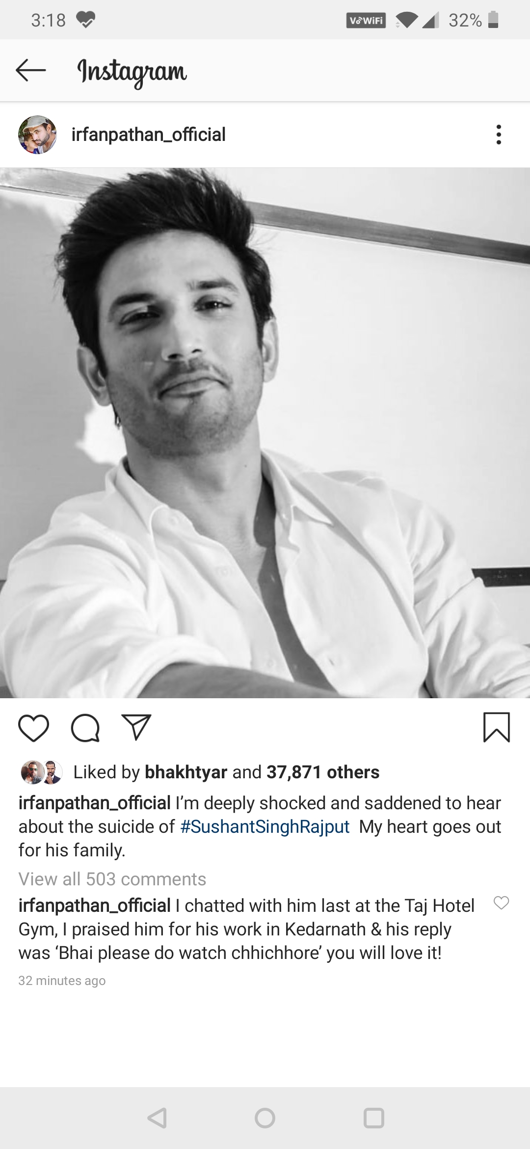 A couple of days ago, the news of his ex-manager, Disha Salian had shocked the nation by committing suicide by jumping off a building in Mumbai. Actor, Sushant had shared his disbelief on Instagram. He had posted a story and had written, "It's such devastating news. My deepest condolences to Disha's family and friends. May your soul rest in peace." (Also Read: Irrfan Khan Dies At 53, Amitabh Bachchan, Shoojit Sircar And Other B-Town Celebs Pay Their Tribute)