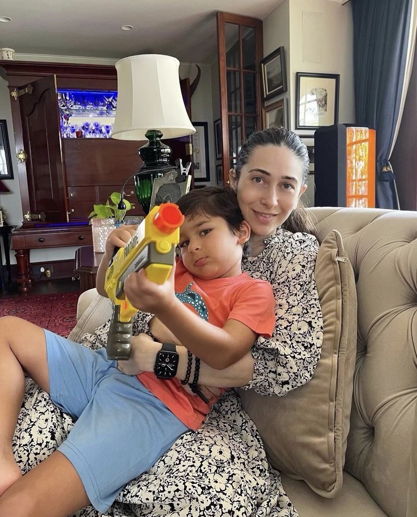 On the other hand, Taimur Ali Khan’s maasi, Karisma Kapoor shared an adorable picture with him on her IG handle to wish her jaan on his birthday. In the photo, Taimur can be seen sitting on his massi’s lap, holding a toy gun. His Lolo ma’s birthday wish for him can be read as:
