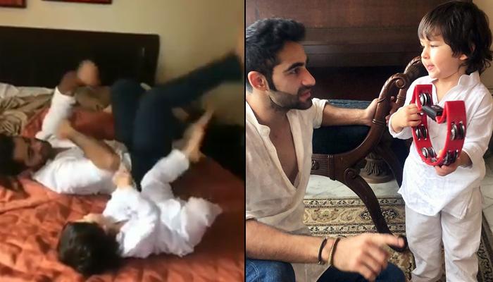 And it was then, when Armaan Jain treated Taimur Ali Khan’s fans with a glimpse of baby Tim doing bicycle crunches with him. Dressed in white kurta-pyjama, baby Tim could be seen acing the bicycle crunches as his mamu, Armaan teaches him. Given that his mommy, Kareena Kapoor Khan is a fitness freak, it comes as no surprise that Taimur nails the crunches like a pro! Armaan also shared a picture with Taimur holding tambourine and captioned it as “Hey Mr. Tambourine Man, play a song for me!” (swipe right for the video)