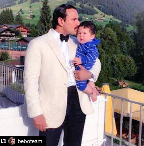 Now if you have been able to get over this cuteness, we are ready with some more. The little man has once again made us go aww with this snap of him and daddy Saif chilling.