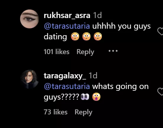 After seeing Veer’s comment on Tara’s post, fans went crazy and couldn’t believe it. Users felt really happy seeing Veer acknowledge the relationship publicly. One fan commented, “@veerpahariya is that trueee?”, while another user said, "@veerpahariya she is sach a sweet girl don’t break her. Please it’s a request." A third user penned, “Happy for you guys”. Another surprised user said, "@tarasutaria uhhhh you guys dating."