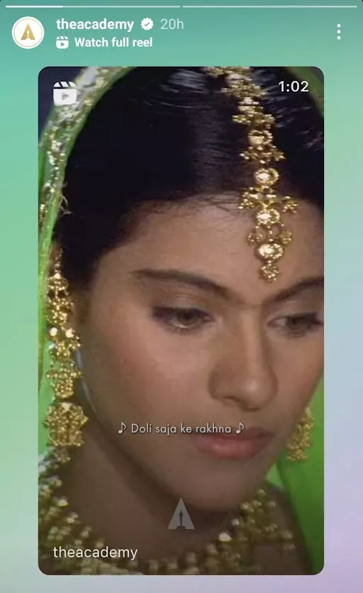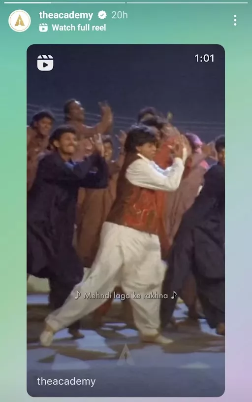 The Academy, also known as the Oscars, is one of the most prestigious awards that every artist from the global entertainment fraternity desires to earn. The Academy often takes to its official Instagram page and recognises quality cinema. It strives to celebrate the global film industry and the artists who make and deliver movies. As an ode to this initiative, The Academy shared a snippet of Mehndi Laga Ke Rakhna from Shah Rukh Khan and Kajol’s iconic movie, Dilwale Dulhania Le Jayenge.