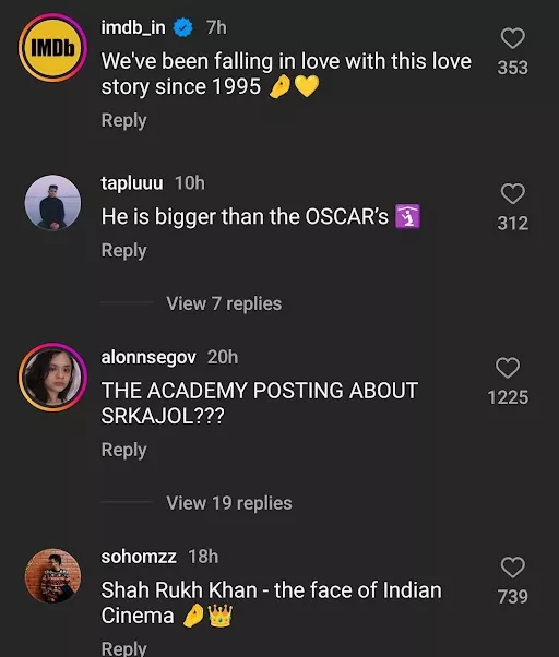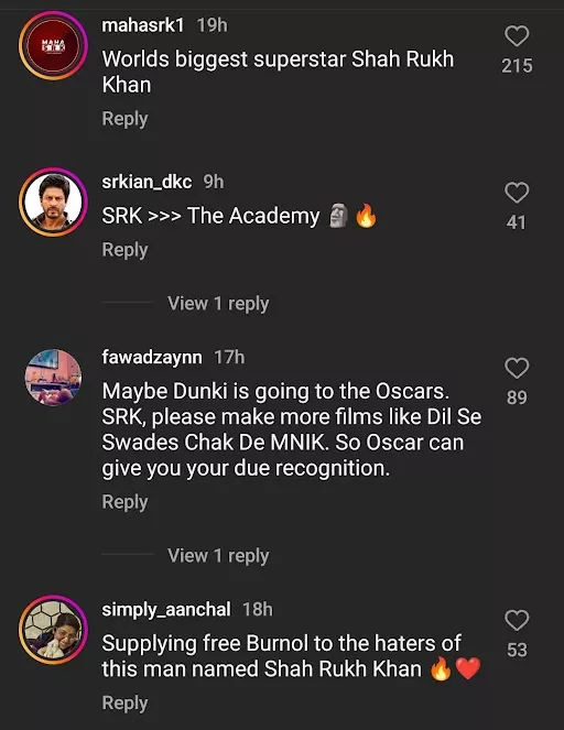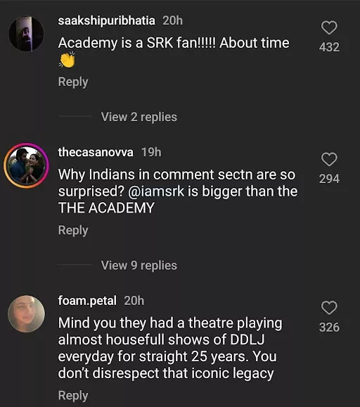 As soon as the post was published on The Academy’s official page, netizens took to the comments section to express their love and appreciation for SRK for representing India on the global platform. Some even highlighted that Shah Rukh Khan is the face of Indian cinema, and even the Academy is a fan of the DDLJ actor. Here are some of the other comments from the netizens: