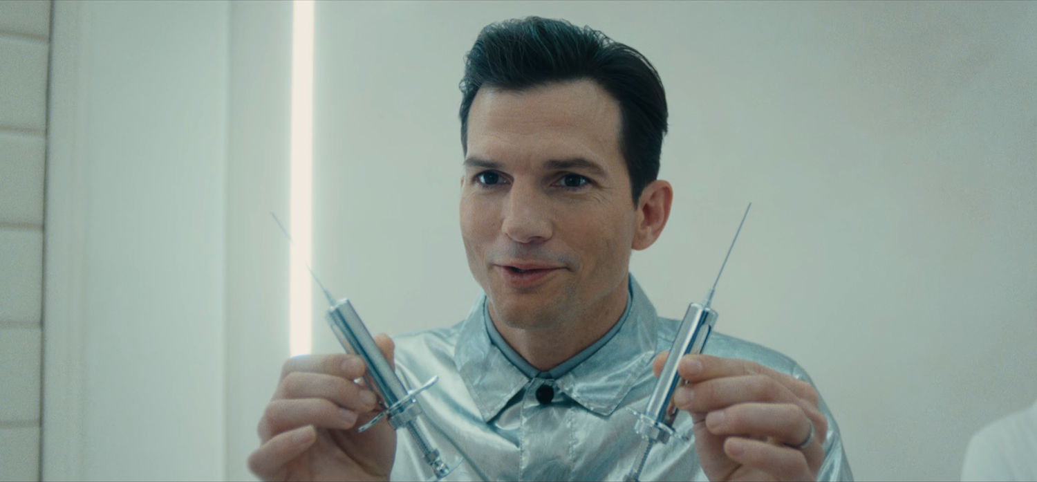 As the surgeon explains his plans, viewers and 'Jeremy' finally learn of the virus that could make America aesthetically great again. However, once the virus has been invented, we get more social commentary wrapped attractively in the likeness of tech billionaire, 'Byron Forst' (Ashton Kutcher), also known as 'the Corporation'. Which is now aided by a man known as 'the Assassin' (Anthony Ramos), who is trying to keep the chaos the virus has unleashed under control (and failing). But hey! Who knew that a beauty virus spread by s**ual contact would be so hard to manage?