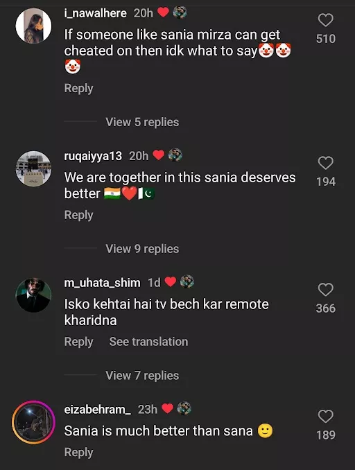 Netizens are miffed with Shoaib Malik and Sana Javed for cheating on their respective spouses and bashed them without mercy in the comment section. Even the Pakistani netizens extended their support towards Sania Mirza and urged her to stay strong. Many even pointed out how Sana, too, cheated on her husband, Umair Jaswal and got a divorce from him just three months back.